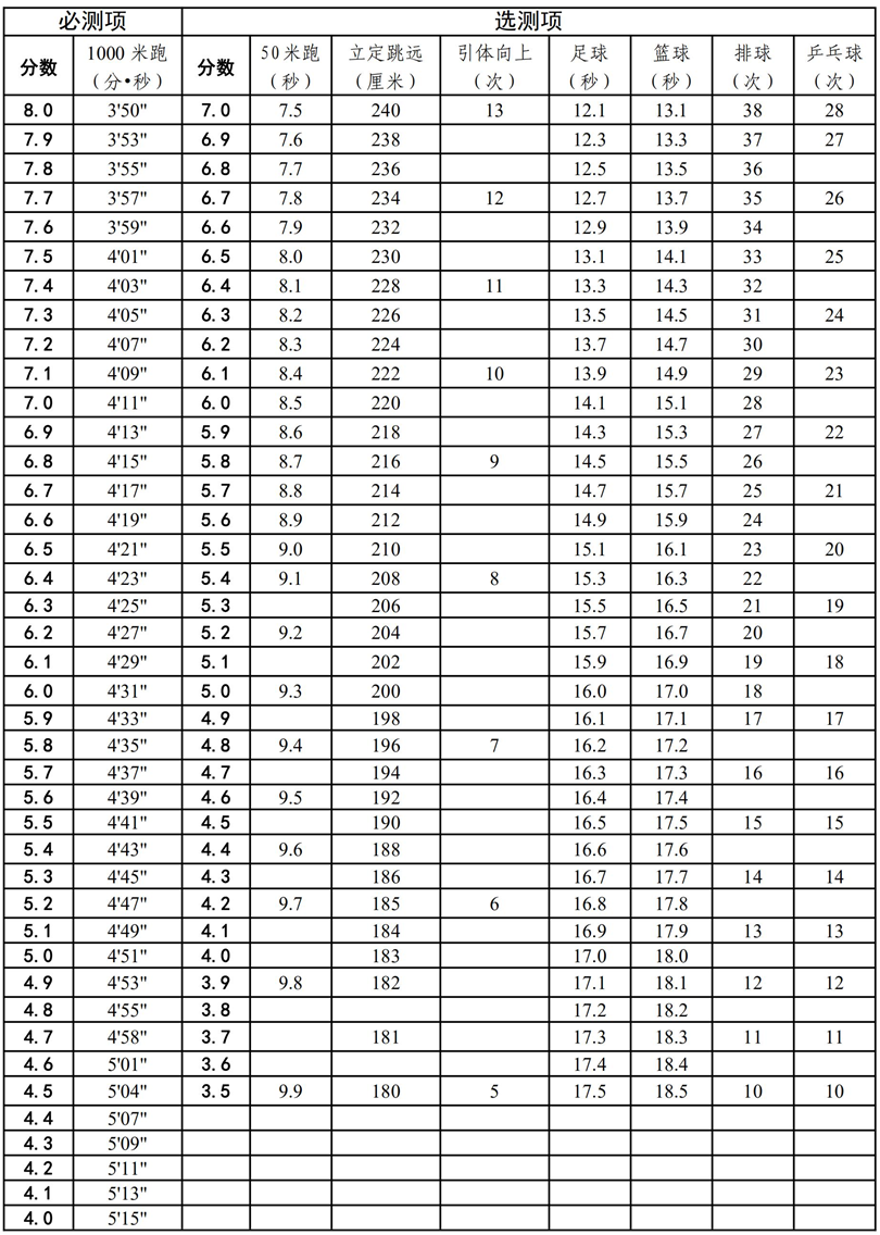 (一)凡正常参加体育与健康考试的考生,根据评分标准按考生实测情况评定成绩。